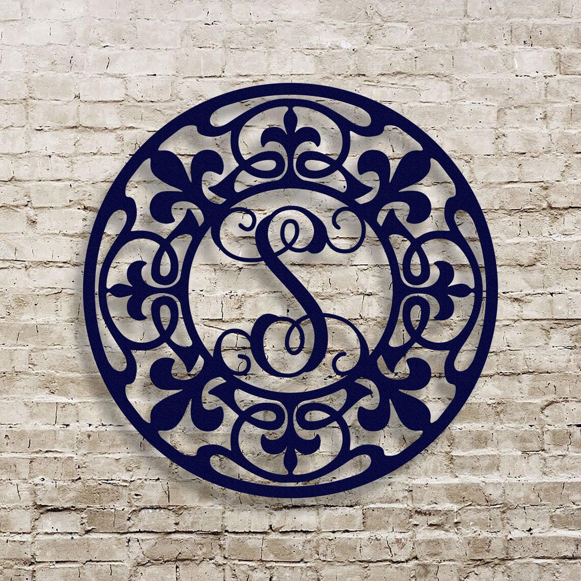 New Orleans Style Monogram Wreath Door Hanger. Personalized with the letter of your choice. Made from heavy 16-gauge sheet metal and powder coated in one of many colors offered. Please inquire if you want a color not listed, as it may be available. These are high quality and durable, made for indoor or outdoor use